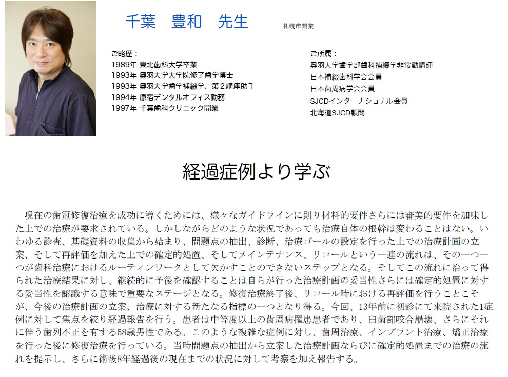 11:15 ③尾崎和郎先生: 歯根破折歯の保存の試みと歯列を守るインプラントの治療計画